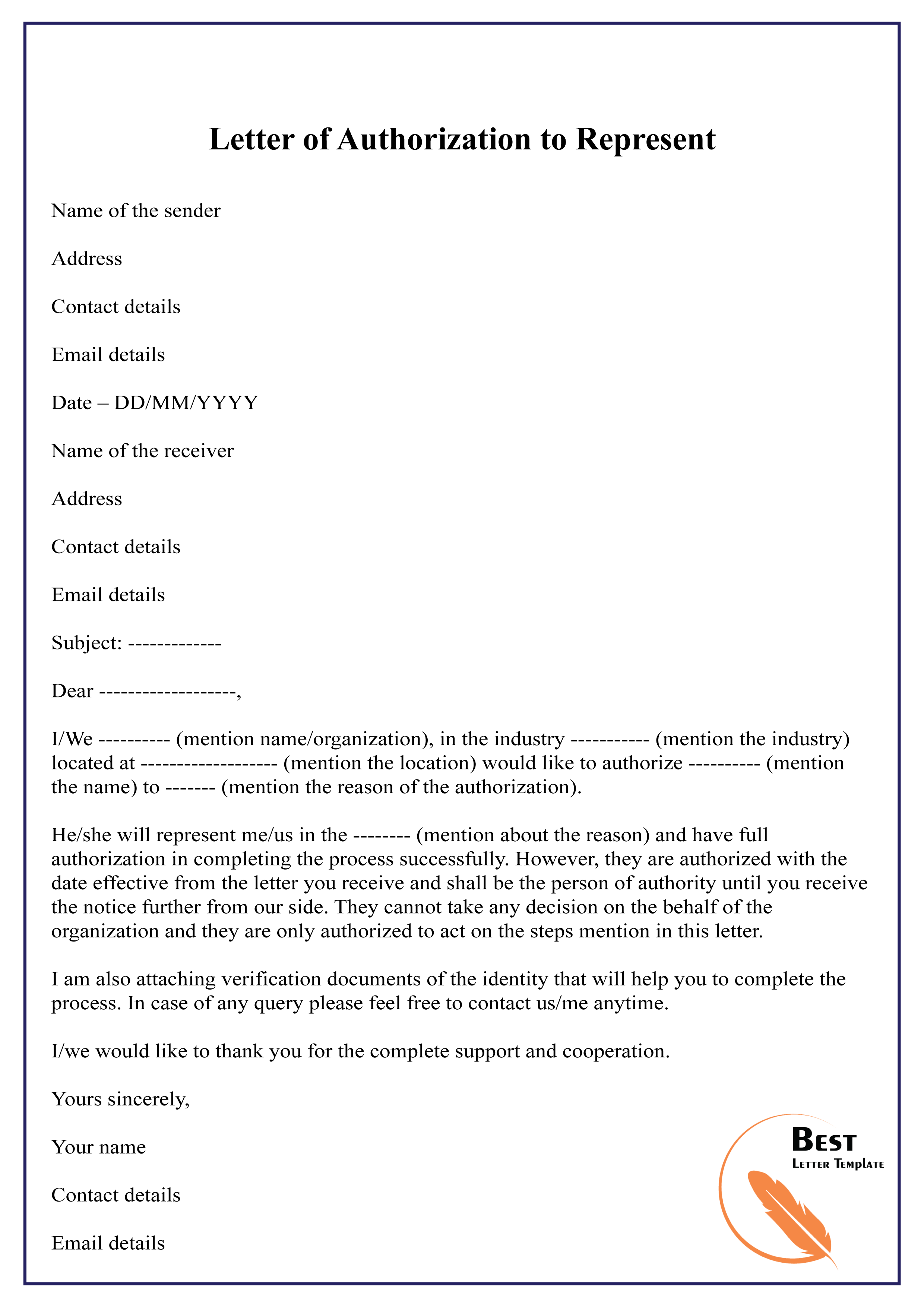 Letter of Authorization to Represent-01 – Best Letter …